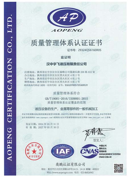 漢中宇飛液壓有限責(zé)任公司屬股份制企業(yè)。成立于2007年5月、注冊資金85萬元。公司地處陜西省漢中市漢臺區(qū)東一環(huán)路3號、占地面積300平方米。公司集研究、開發(fā)、加工、銷售于一體。主要設(shè)計制造各類伺服作動器、伺服閥及TRT位置伺服作動器、液壓油缸、伺服油源、液壓伺服系統(tǒng)。液壓伺服控制閥塊、伺服作動器故障保護模塊、伺服加載器、伺服增壓缸、靜壓伺服支撐等。本公司生產(chǎn)的位置伺服作動器已廣泛應(yīng)用于航空、電力、汽車、石油、工程機械、材料試驗、機械制造等行業(yè)?砂从脩粢笤O(shè)計制造專用伺服作動器。